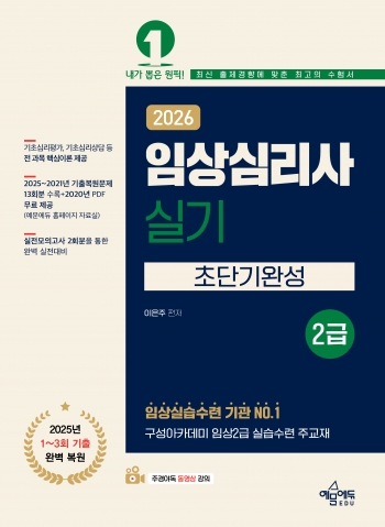 정신건강임상심리사로서 심리상담센터 운영·활동, 각종 저술 및 강의 활동을 해 온 저자의 ‘2026 임상심리사 2급 실기 초단기완성’이 출간되었습니다. 본서는 실제 출제되었던 빈출 이론을 정리하여 수록함은 물론, 2021년부터 2025년까지 실기시험에 출제된 기출문제를 완벽 복원하였습니다. 또한, 실전모의고사와 실제 시험장에서 활용할 수 있는 전문가의 예시답안을 함께 구성하여 수험생 여러분들에게 가장 확실한 합격을 선사합니다.